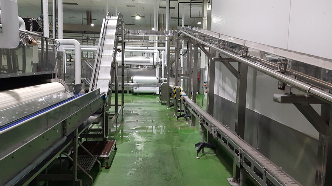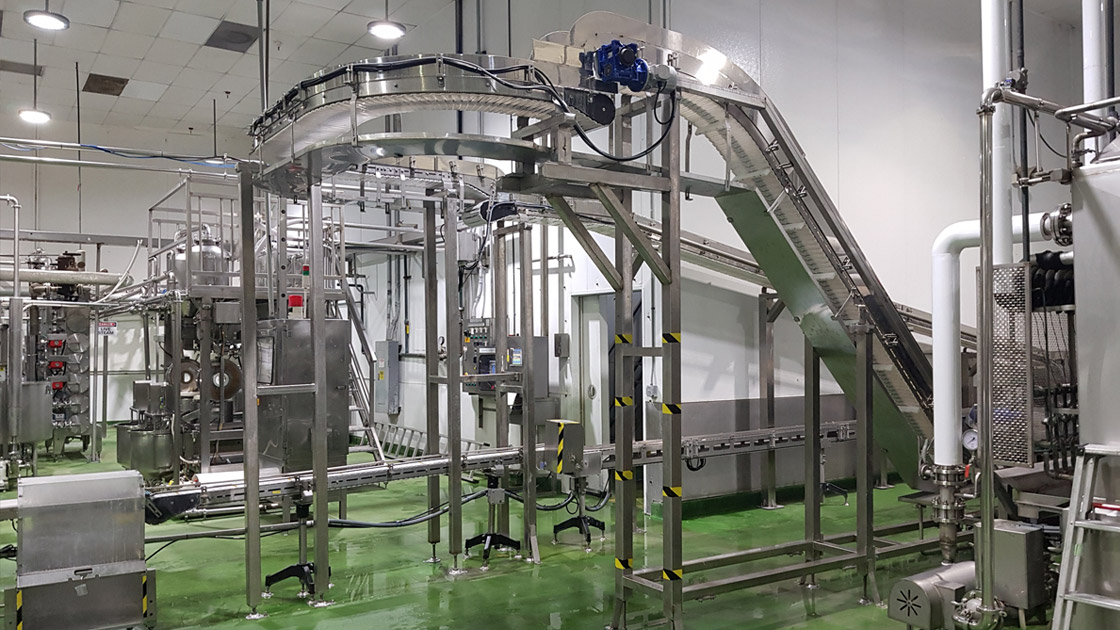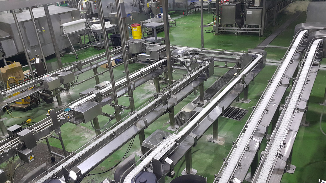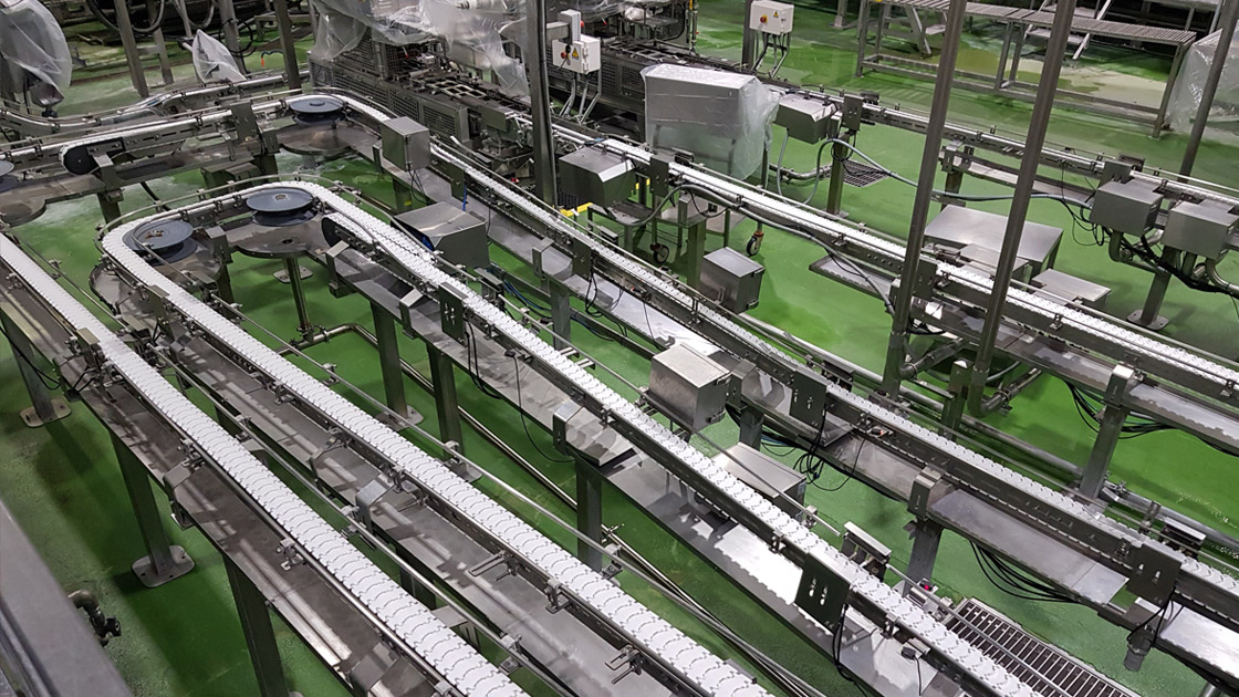 Stainless steel conveyor system is suitable for use in both dry and wet environments. It is easy to integrate into the production process and extremely low-maintenance. The open system design enables easy, safe and quick cleaning in accordance with the highest hygiene standards. Of course, the system can easily be combined with the aluminum or third-party systems.